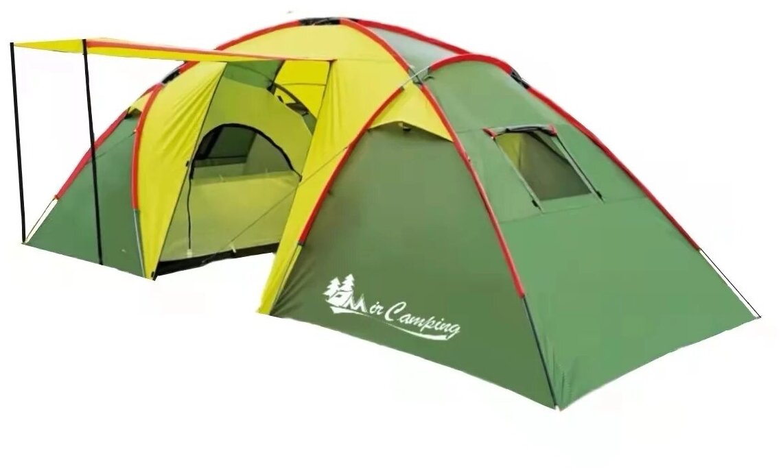 Туристическая четырехместная палатка ART1002-4 (Две комнаты и один зал), Зеленый