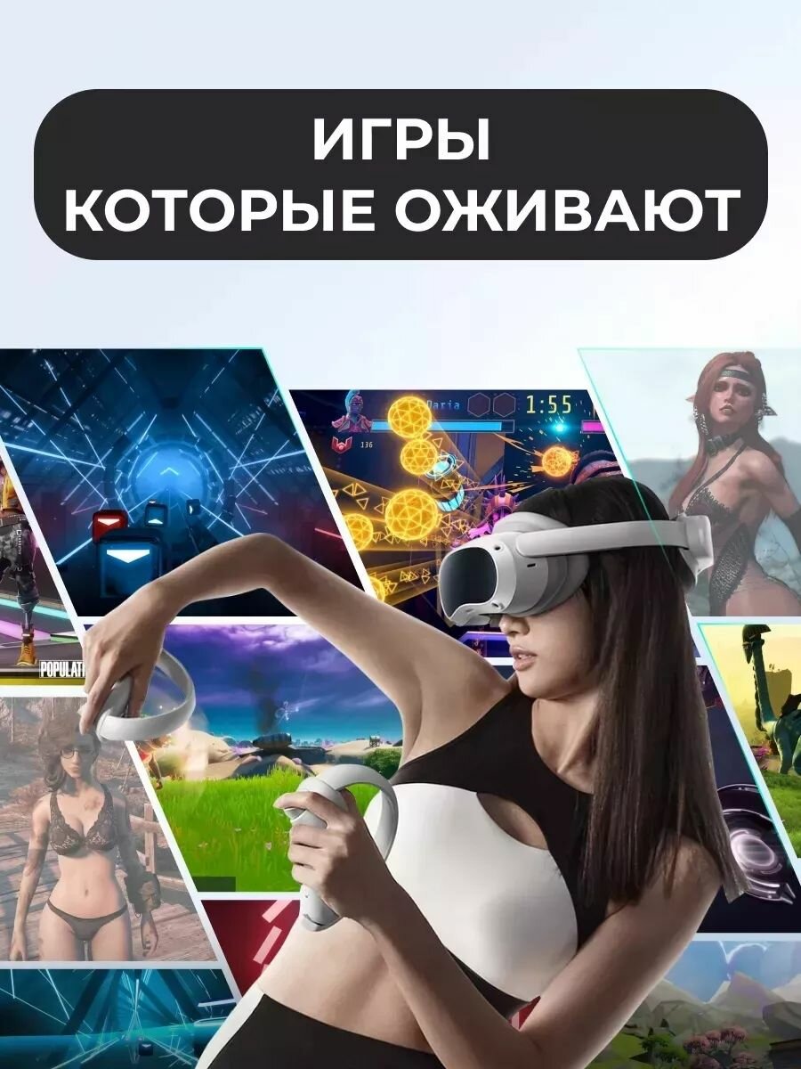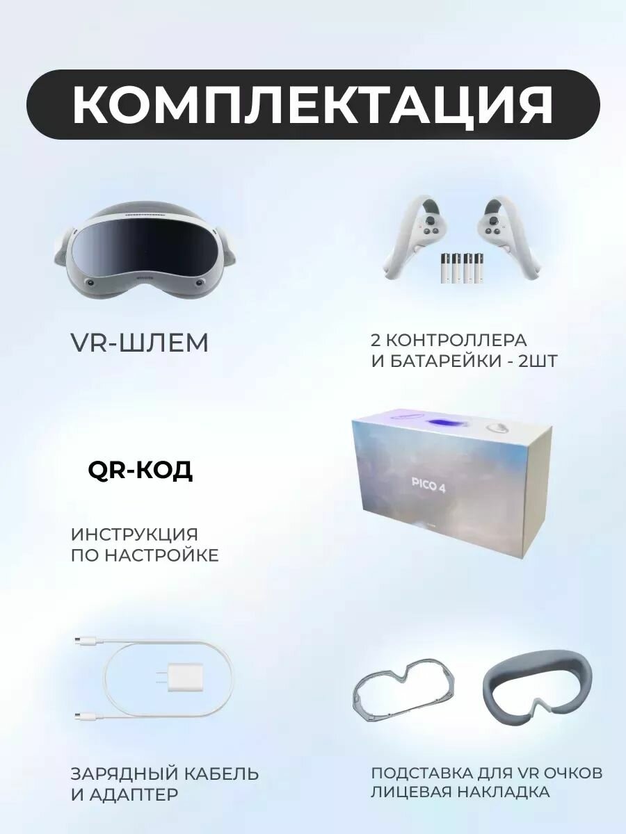 Система Шлем VR Pico 4 VR 128GB 4320x2160, 128 ГБ, 90 Гц, базовая, белыйКитайская прошивка