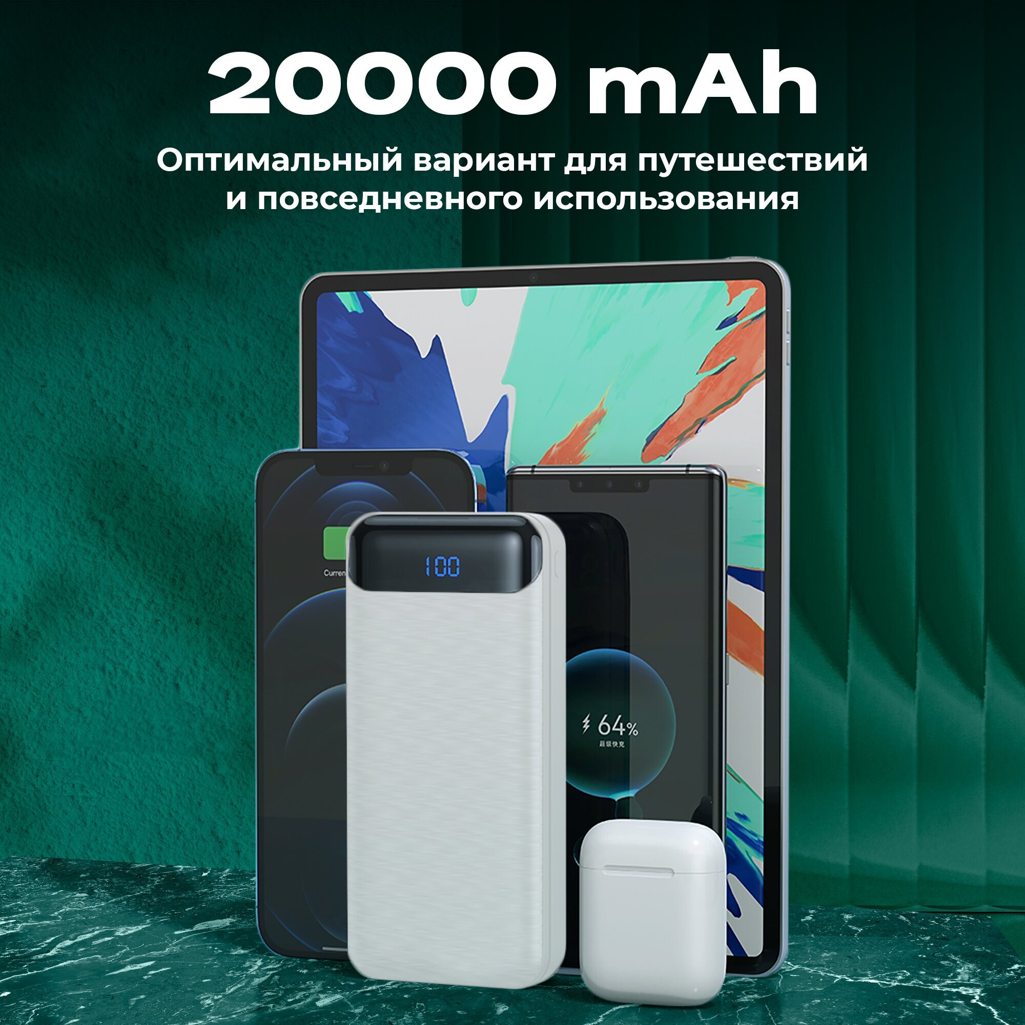 Повербанк, WALKER, WB-525, 20000 mAh, белый // повербанк 20000, powerbank, внешний аккумулятор, повербанк для айфона