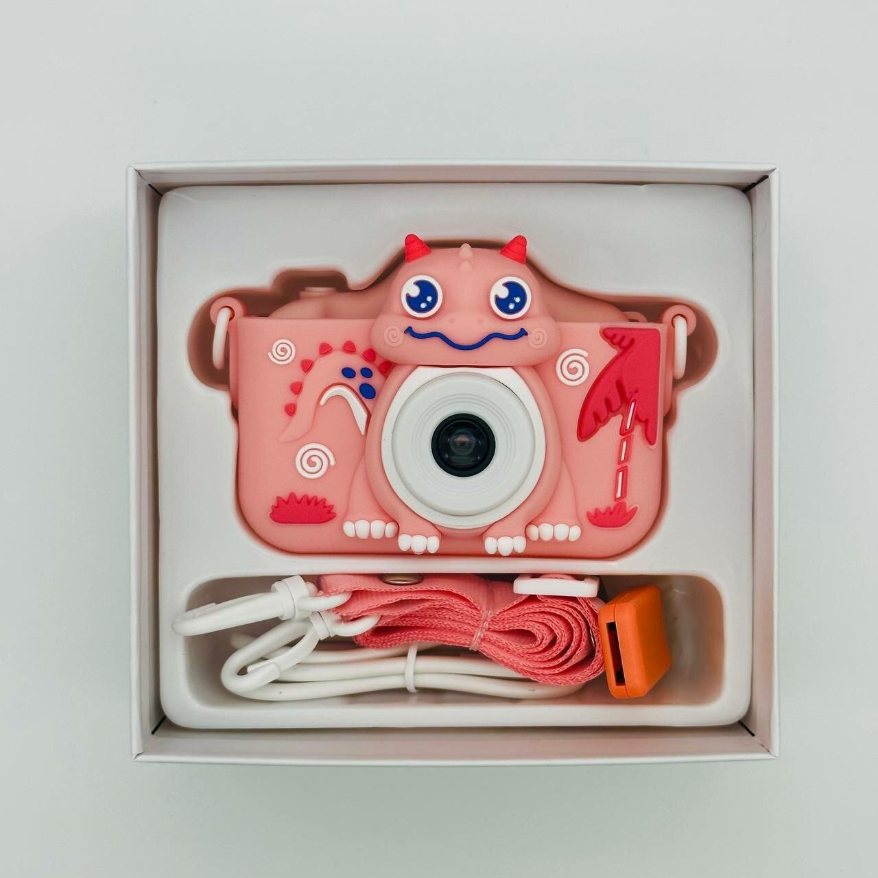 Детский фотоаппарат Динозавр 48 Мп ударопрочный 850 mAh высокого качества со встроенной памятью, фотоаппарат для детей с играми и селфи, розовый, подарок для девочки
