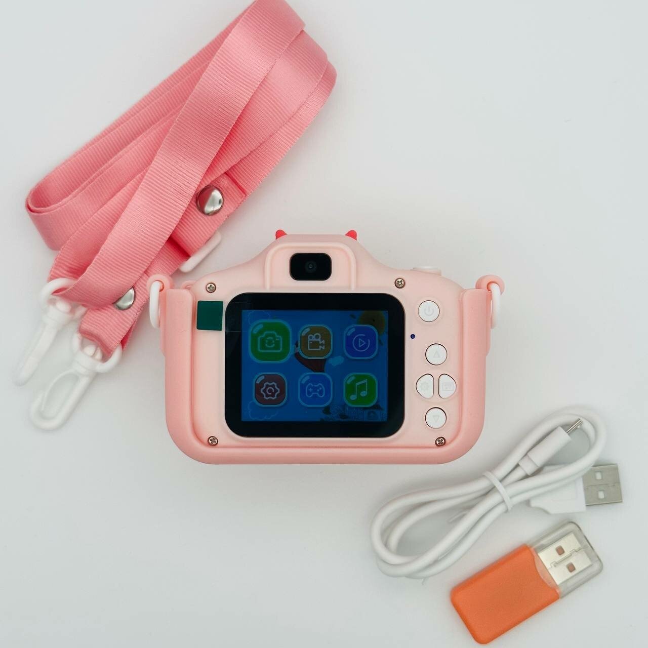 | Плюсы: | Фотоаппарат огонь, соответствует описанию,есть даже селфи,таймер для фото,видео, 3 игры,музыка( но надо скачать на карту- памяти,сами еще не скачивали). Советую к покупке хороший подарок, продавца рекомендую.Ребенок в восторге, фотографий хватает без карты памяти на 50шт, если вставить карту то можно и видео записывать. |