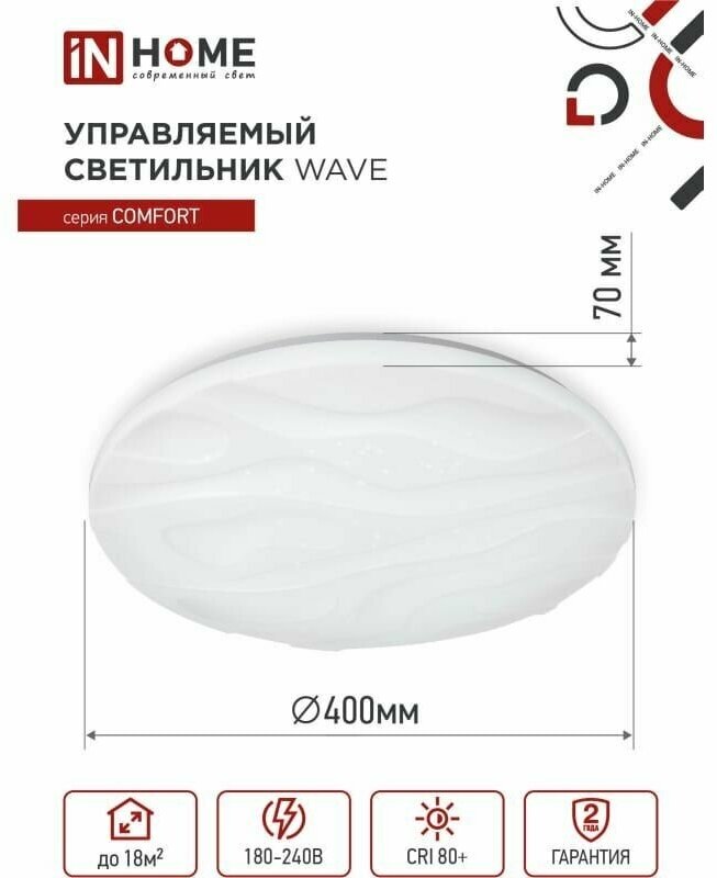 Настенно-потолочный светильник IN Home COMFORT WAVE 55Вт 230В 3000-6500К 4400лм 400х70мм с пультом ДУ 4690612034911