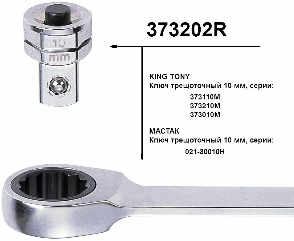Переходник для трещоточных ключей 10мм для головок 1/4 KING TONY 373202R King Tony 373202R