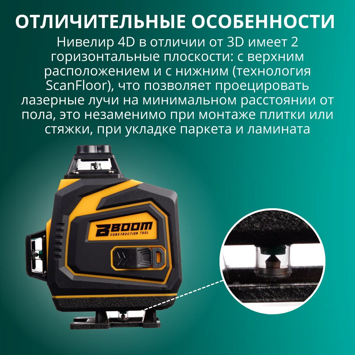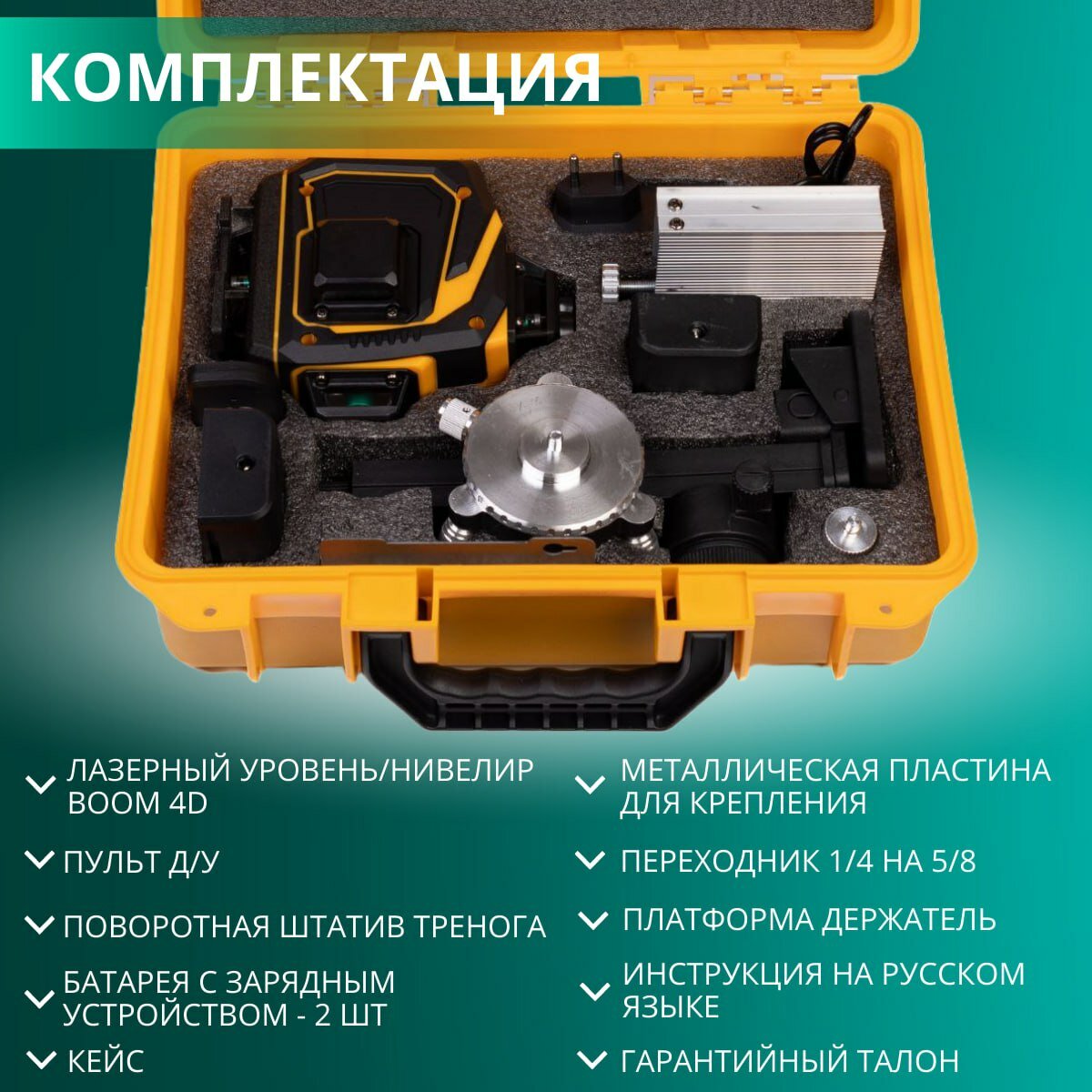 Лазерный уровень самовыравнивающийся BOOM 4D 360 DLT-16/4GX Зеленый Луч 16 линий в кейсе. интересное: