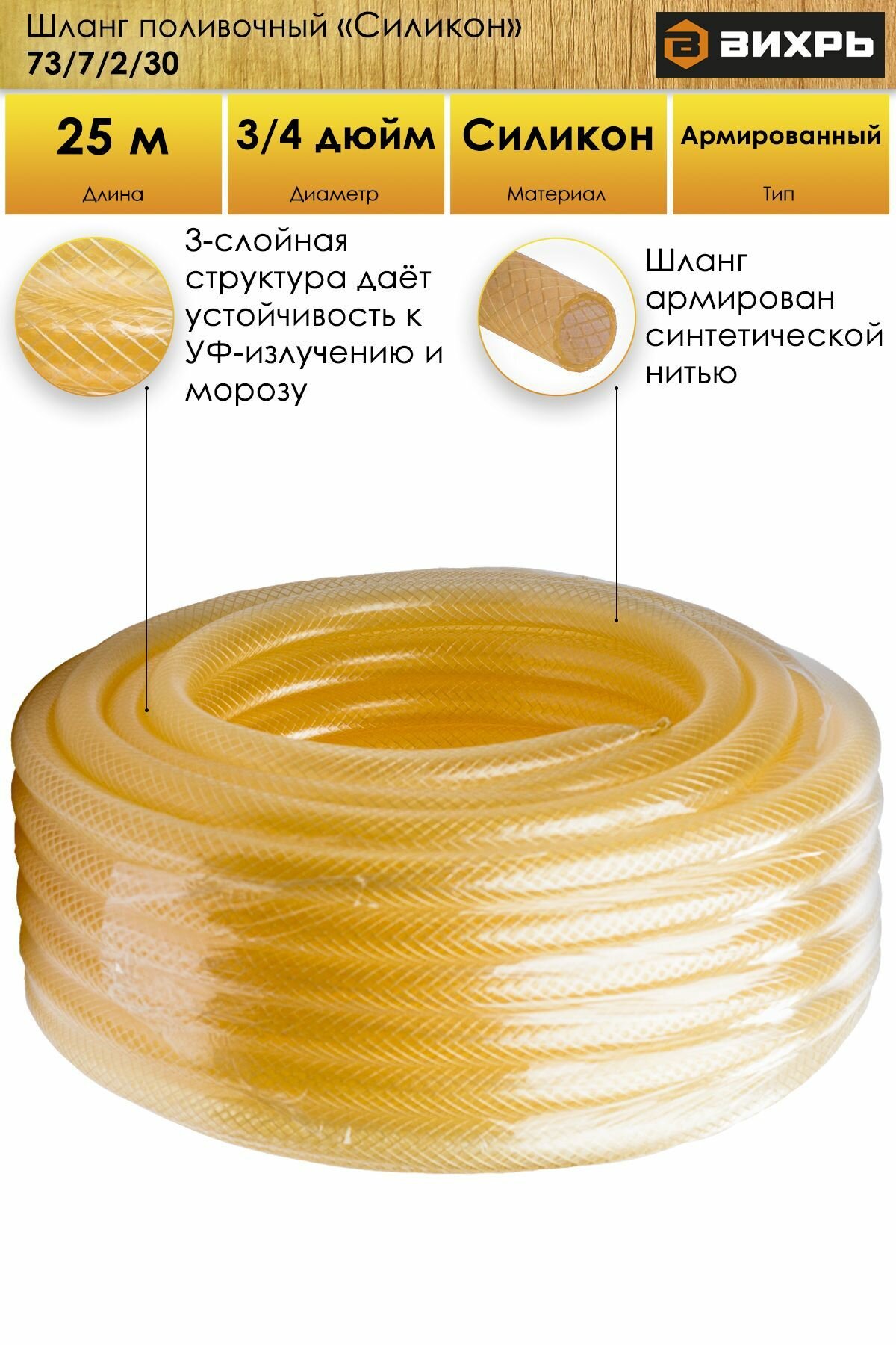 Шланг поливочный «Силикон» трехслойный армир. 3/4дюйм 25м прозр. Вихрь 73/7/2/30 интересное: