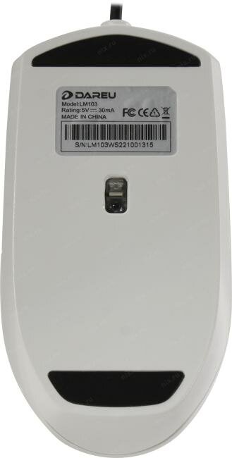 Мышь проводная Dareu LM103 White (белый), DPI 1200, размер 118x61x38мм, 1,8м