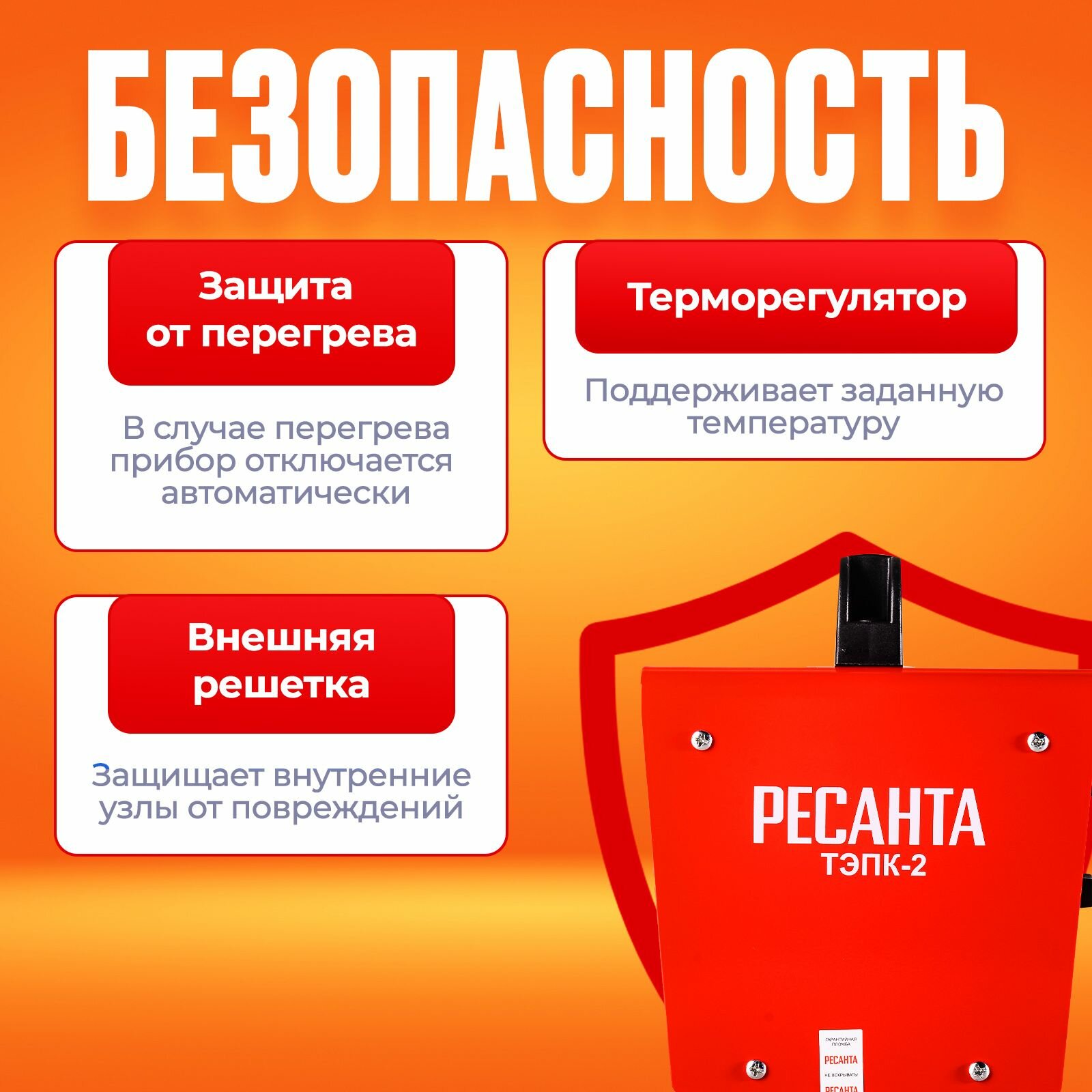 Тепловая электрическая пушка Ресанта акция ТЭПК-2 керамический нагревательный элемент, квадратный корпус 67/1/40