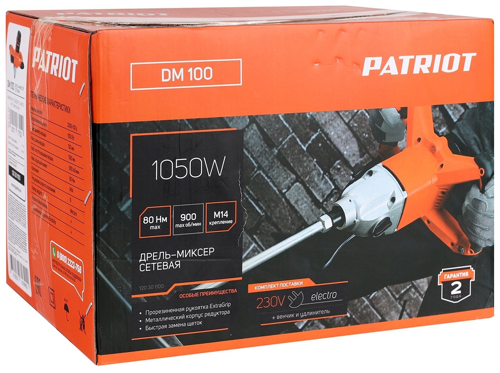 Дрель миксер электрическая PATRIOT DM 100 / 1050Вт