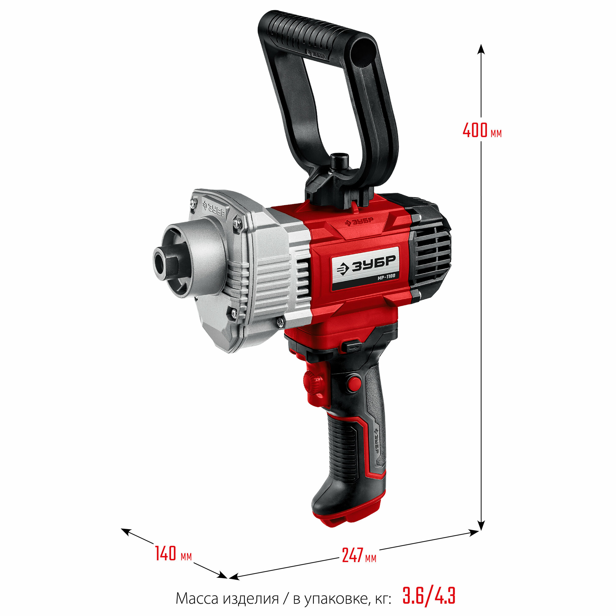 Строительный миксер Зубр МР-1100 строительный, 1100 Вт