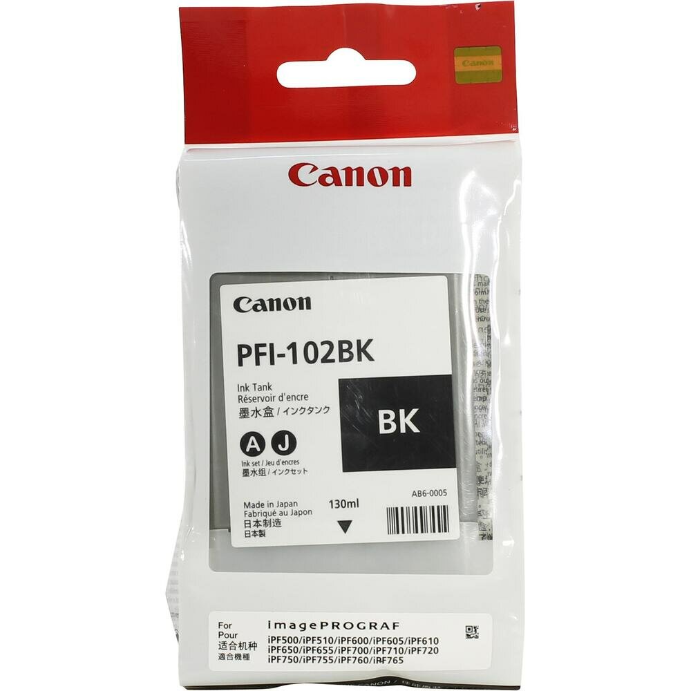 Картридж Canon PFI-102Bk черный для iPF500/iPF510/iPF600/iPF605/iPF610/iPF700/iPF710/iPF720. Объем 130 мл.