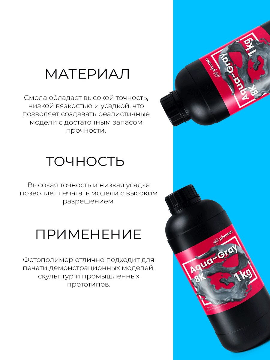 Фотополимер Phrozen Aqua Gray 8K, серая, 1 кг интересное: