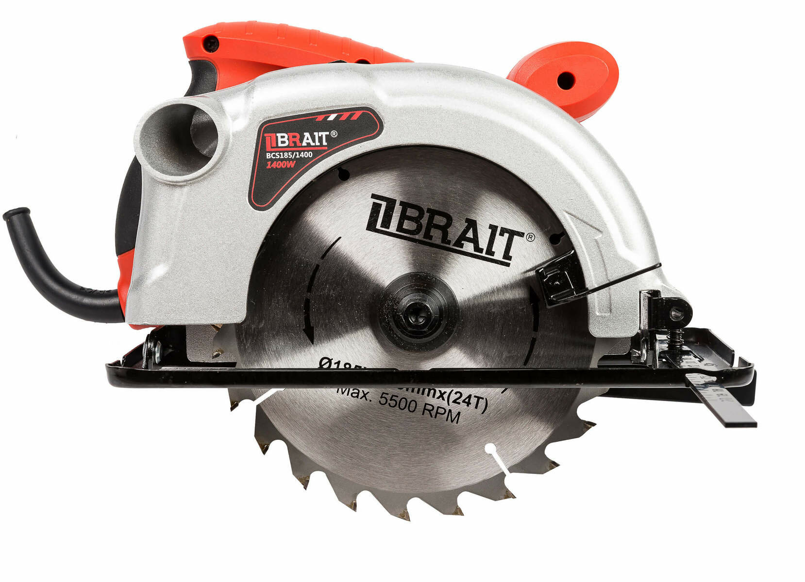 Пила циркулярная BRAIT BCS185/1400 (1400Вт, 185мм, 5500об/мин, диаметр посадочного диска 20мм