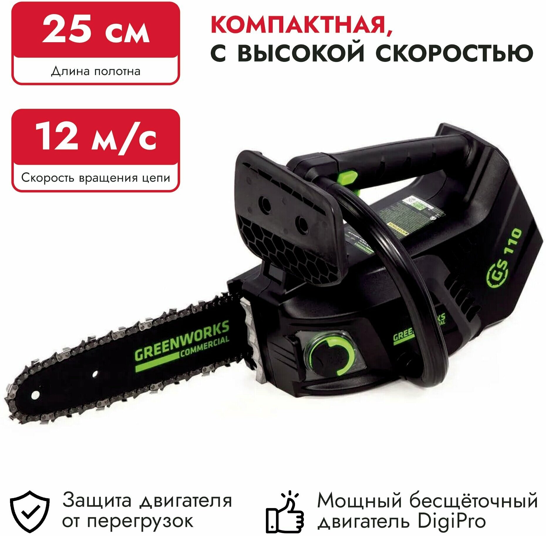 Пила цепная аккумуляторная Greenworks GD40TCS, без аккумулятора и зарядного устройства, 40V интересное: