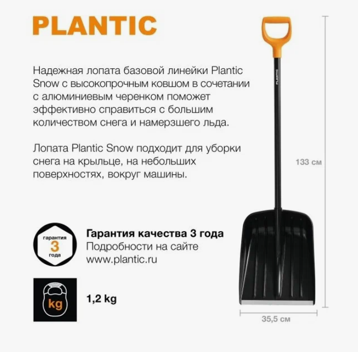 | Плюсы: | Крепкая снеговая лопата с алюминиевой ручкой |