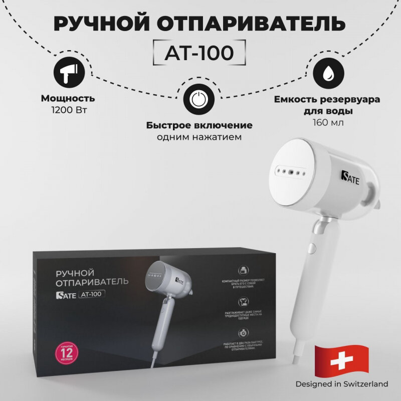 Купить Ручной отпариватель SATE AT-100 для одежды, вертикальное и горизонтальное отпаривание, 2 в 1, ёмкость 160 мл, подача пара 20 г/мин, 1500 Вт, белый