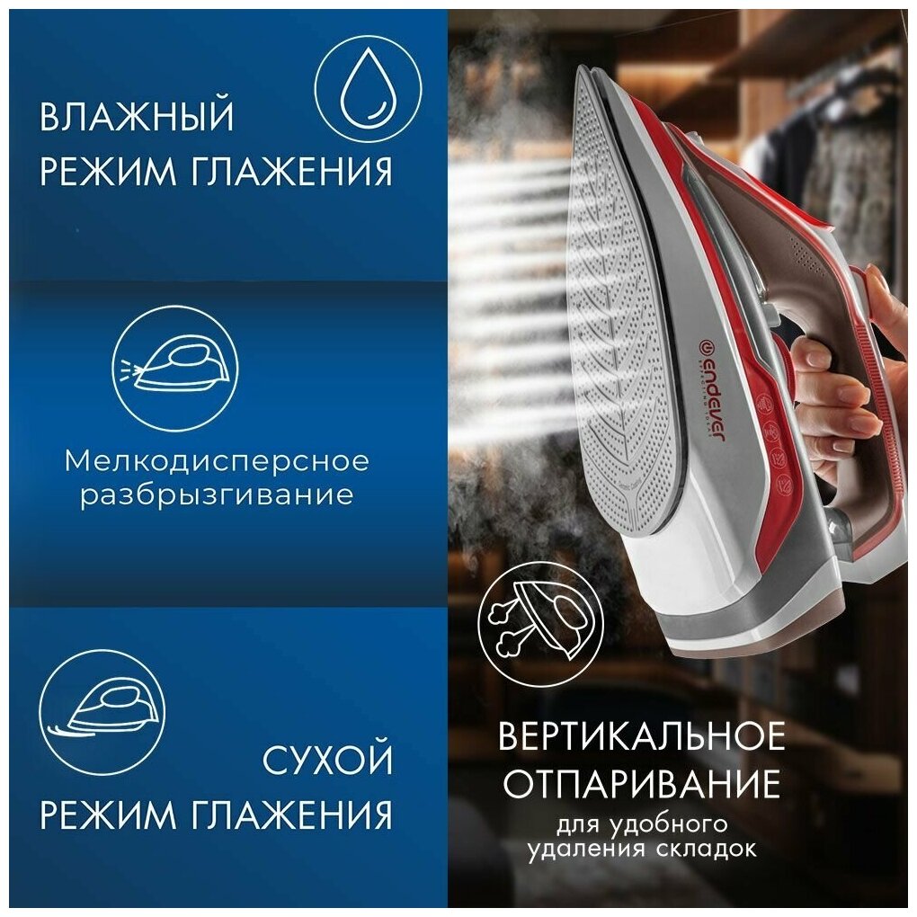 Купить Утюг для одежды ENDEVER DELTA-223 / сухой и влажный режим глажения / вертикальное отпаривание / самоочищение / анти-капля