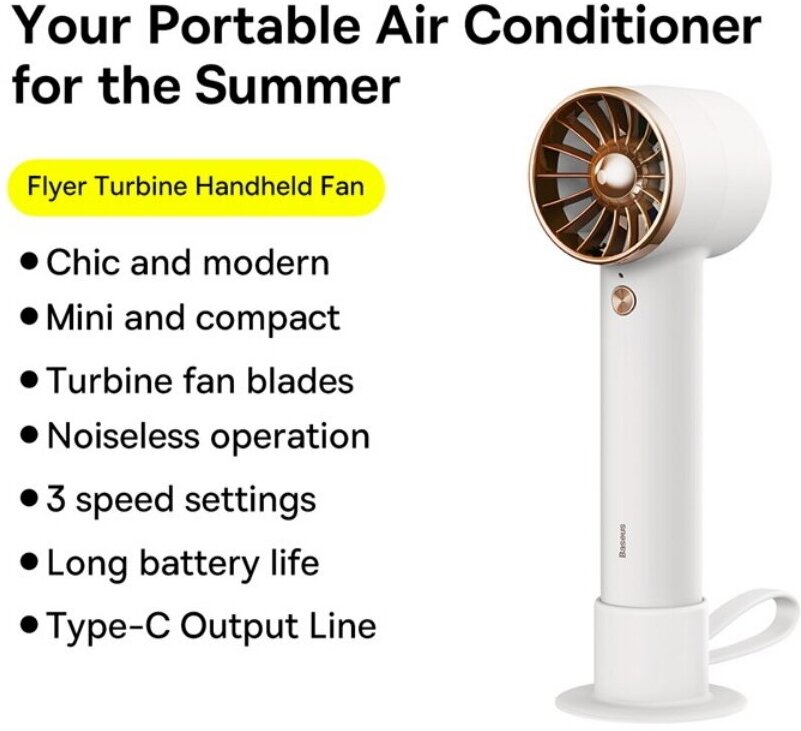 Портативный мини-вентилятор Baseus Flyer Turbine Handheld Fan High Capacity (4000mAh) Type-C Output Line белый интересное: