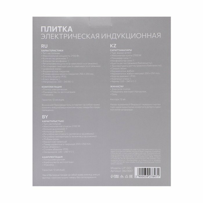 Плитка электрическая LuazON LIP-001, индукционная, 1 конфорка, 2100 Вт, чёрная Luazon Home 3927847 . интересное: