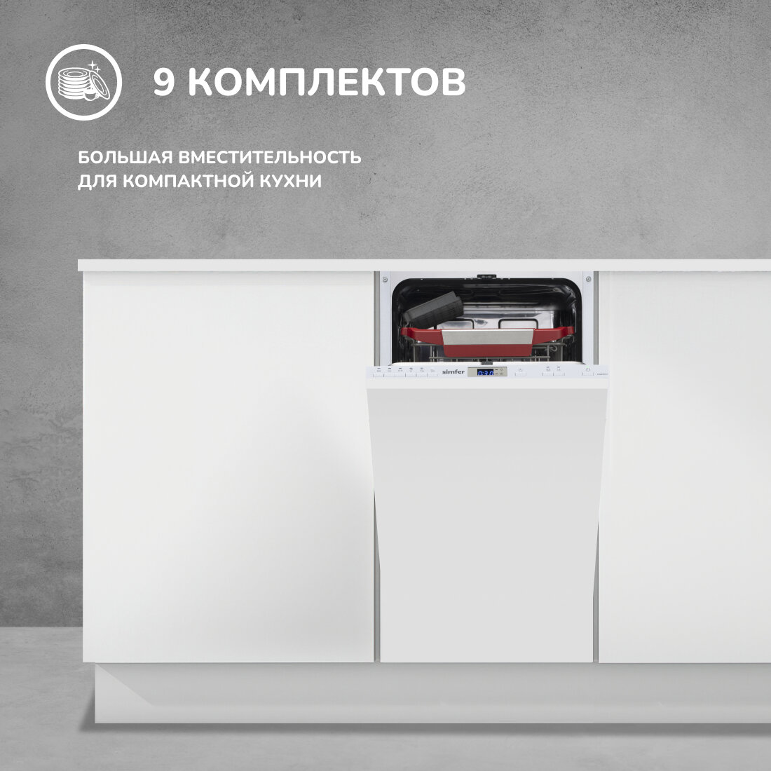 Встраиваемая посудомоечная машина Simfer DGB4601 (вместимость 9 комплектов, отдельная корзина для приборов, энергоэффективность А++) интересное: