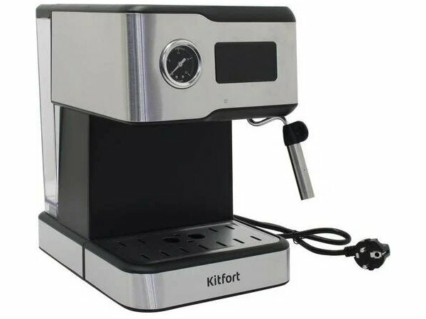 Кофеварка KitFort КТ-7104, рожковая, серебристый / черный