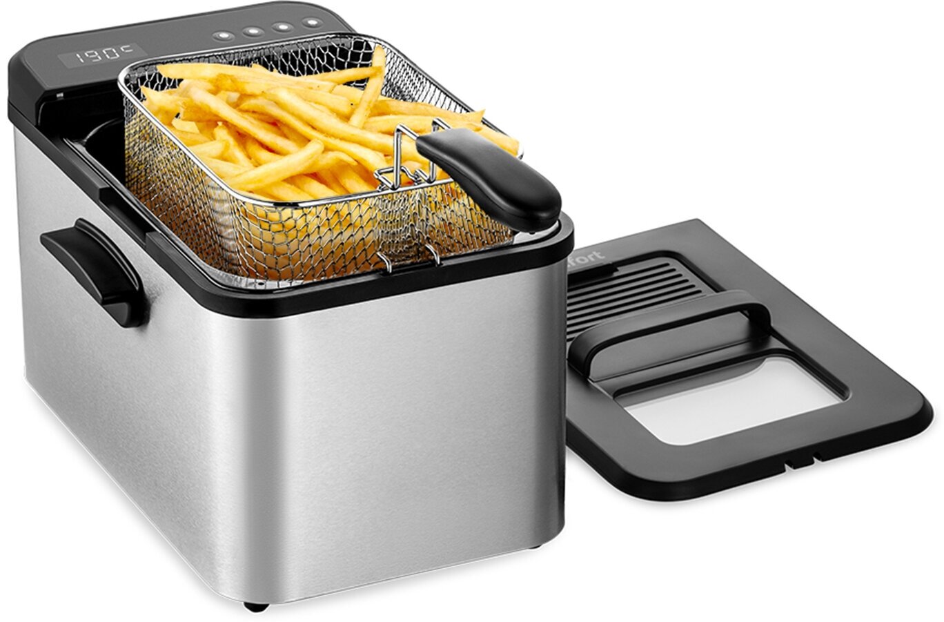 | Отзыв: | На первой программе 190 градусов температура будет в районе 160 градусов. Подтверждалось несколько раз термометром на самой фритюрнице и с помощью внешнего термометра. Это очень странно, ведь тэн мощный и он может держать температуру даже в момент, когда погружаешь в масло заморозку. Это самый большой минус.