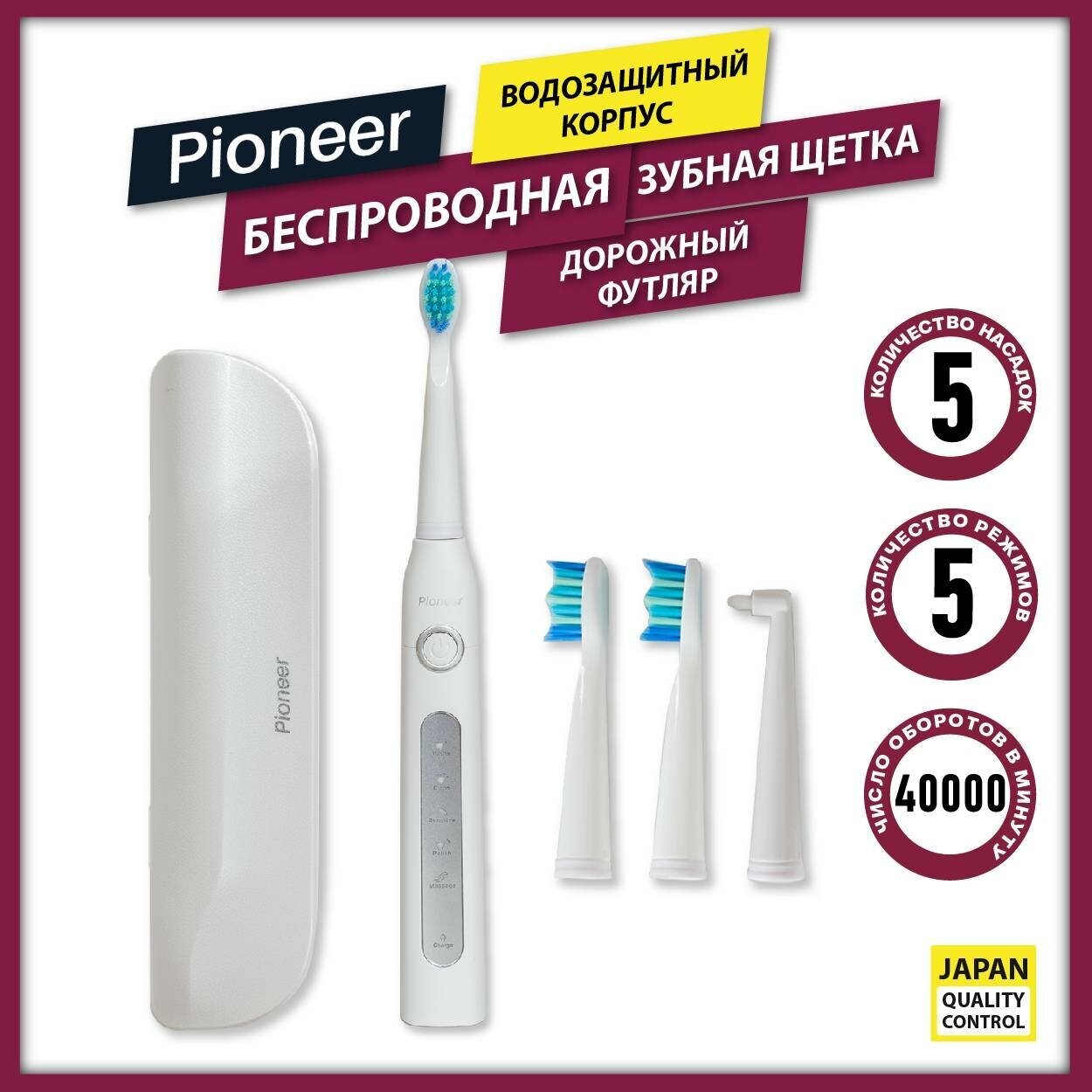 Электрическая зубная щетка Pioneer TB-1012 с водонепроницаемым корпусом IPX7, 5 сменных насадок, USB кабель, 5 режимов