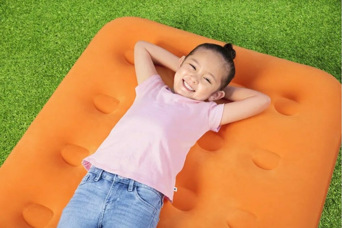 Надувной матрас туристический для сна с насосом Bestway 67918, 89х158х18 см, до 50 кг / Надувная кровать детская односпальная для палатки, для туризма