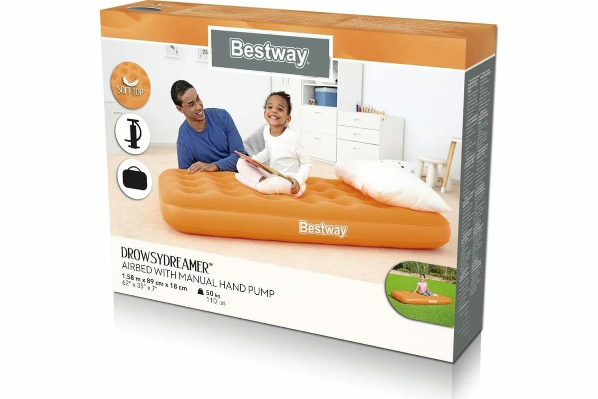 Купить Кровать (Матрас) надувной DrowsyDreamer с ручным насосом 158x89x18 см Bestway 67918
