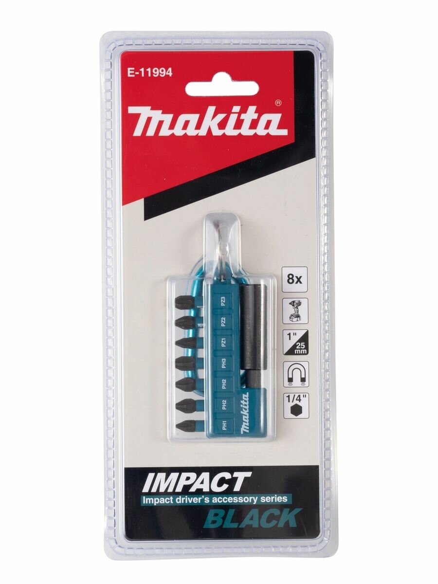 Набор бит Makita Impact Black 25 мм 8 шт.(PH1,2XPH2,PH3,PZ1,PZ2,PZ3,магнитный держатель)