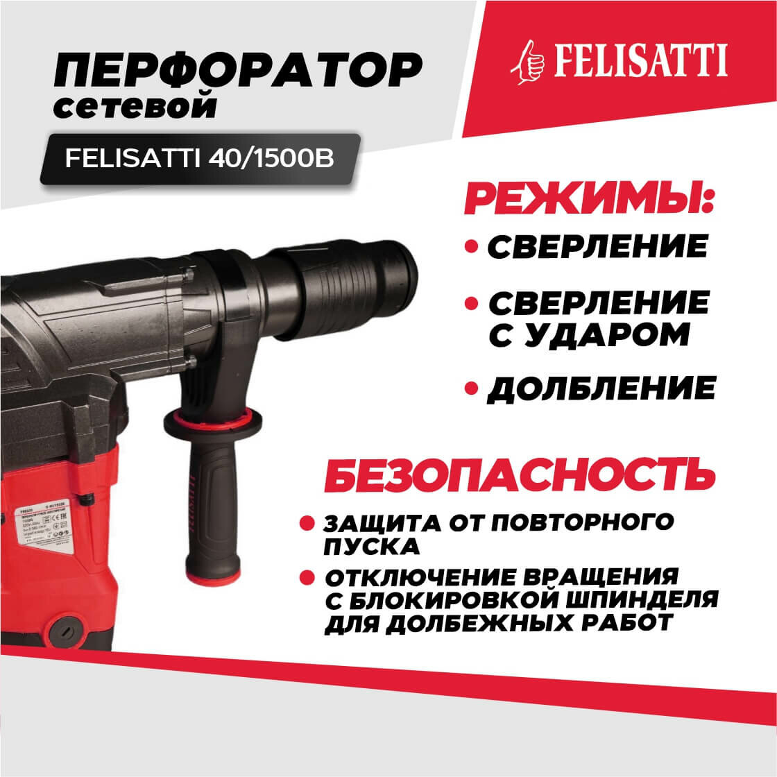 Перфоратор Felisatti П-40/1500В, SDS max интересное: