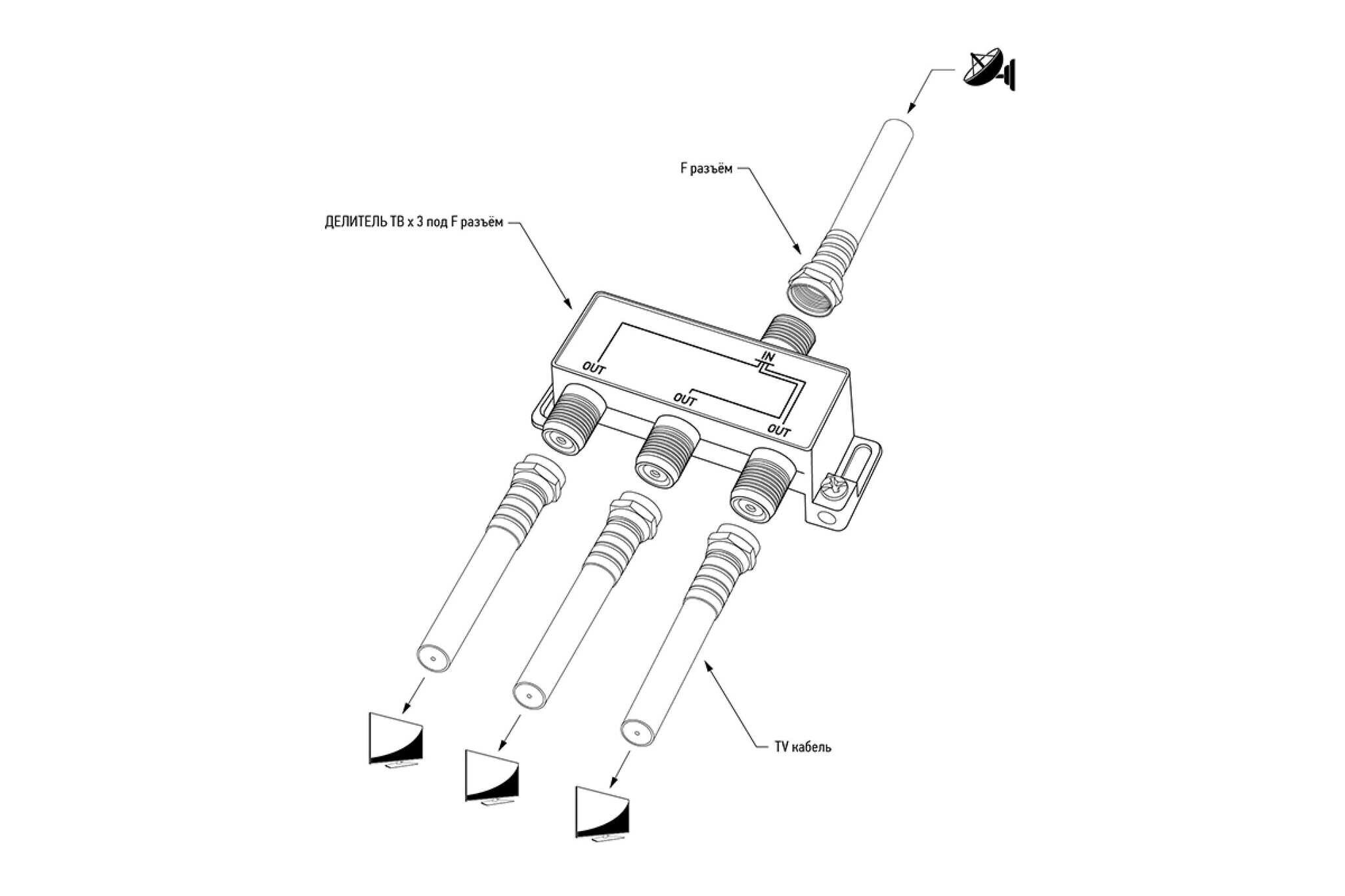 Делитель ТВ сигнала для телевизора 5-2500 МГц спутниковый, на 3 выхода интересное: