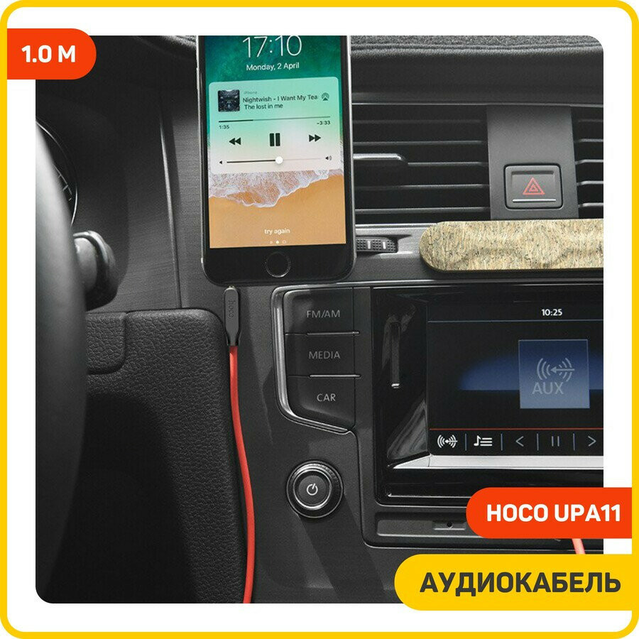 Кабель HOCO UPA11 Jack-3.5mm (TRS,male) на Jack-3.5mm (TRS,male) AUX, 1 метр, для Автомобильной стереосистемы. интересное: