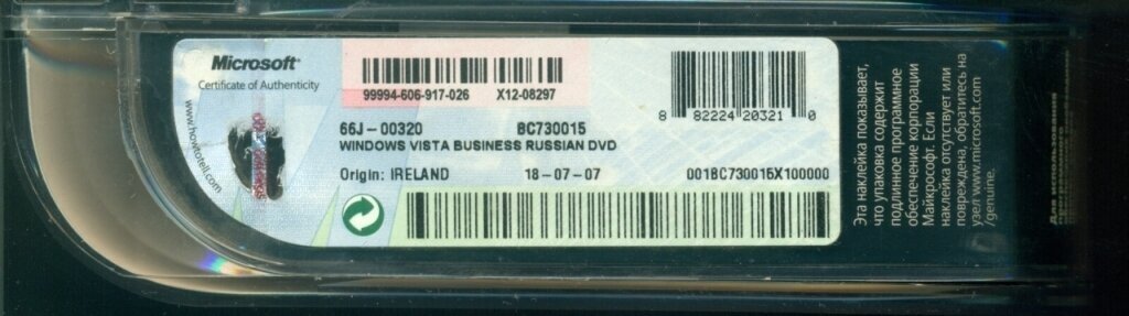 Microsoft Windows Vista Business, лицензия и диск, русский 66J-00320