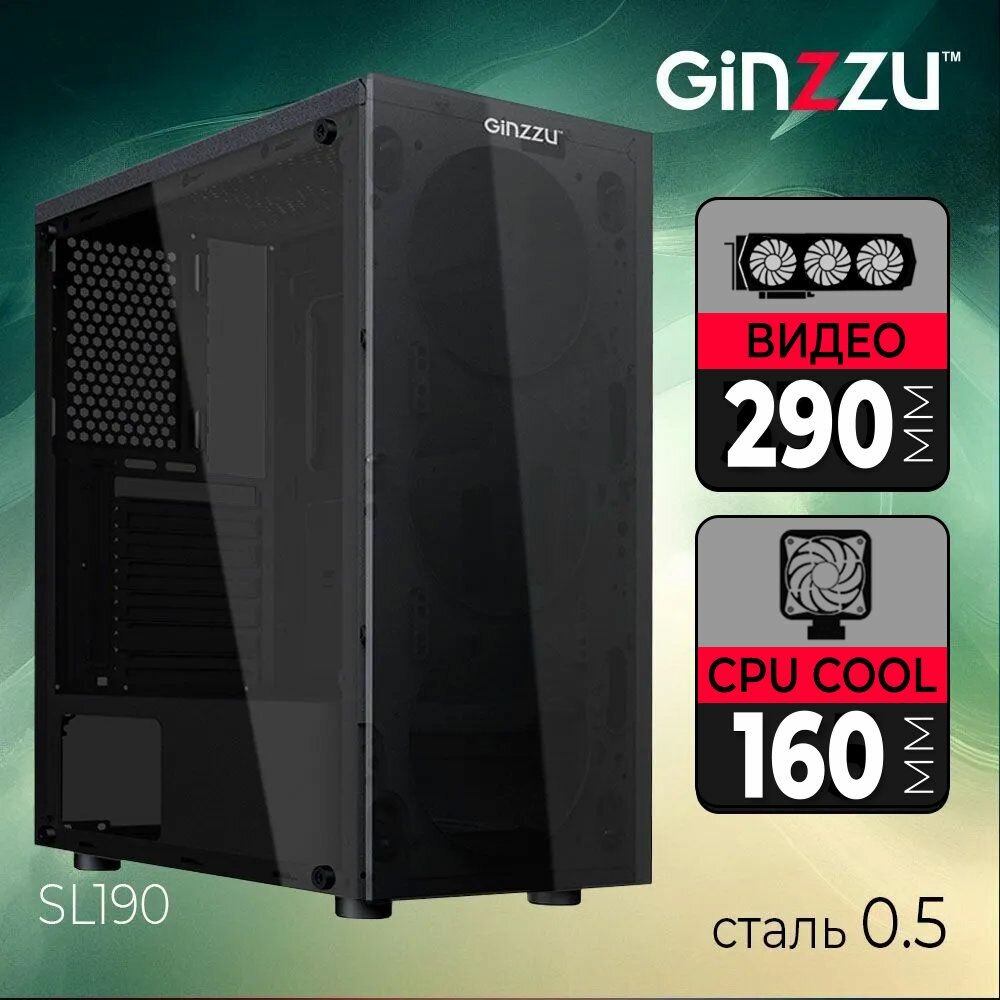 Корпус Ginzzu SL190 ATX, Midi-Tower, без БП черный