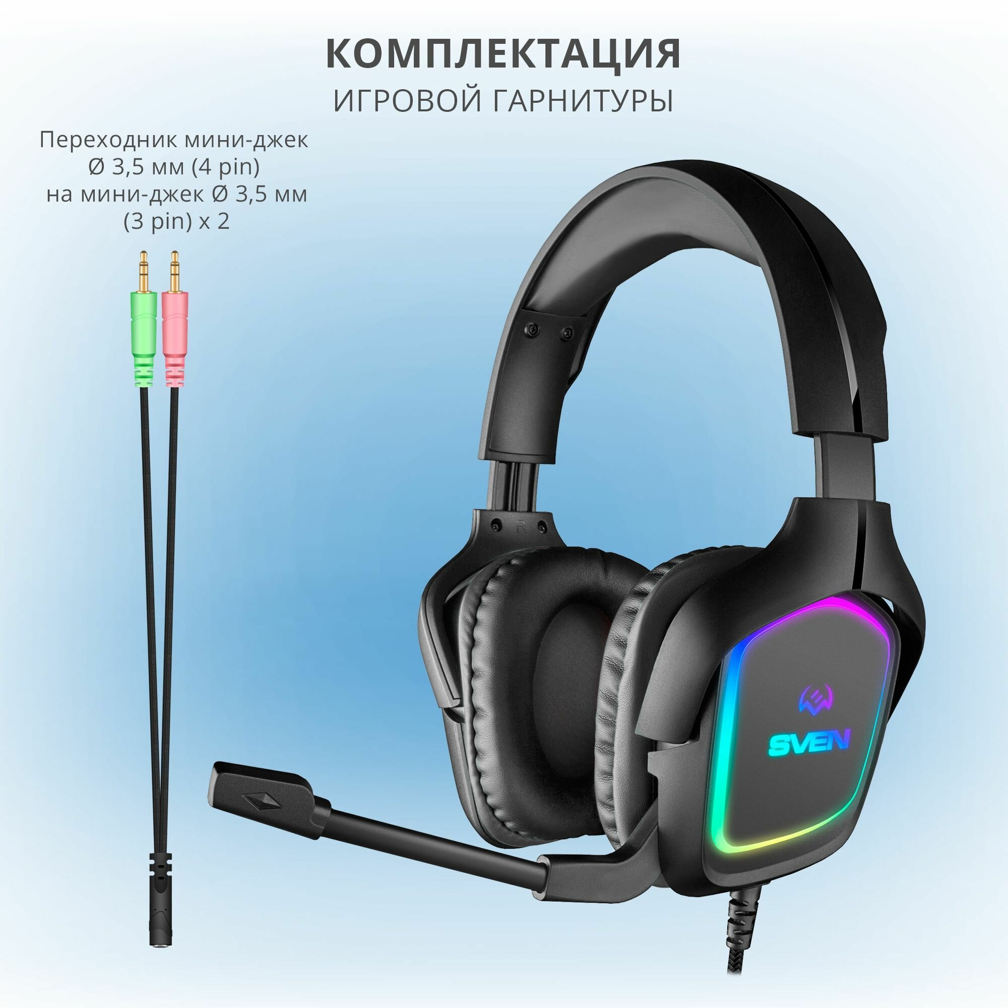 Игровые стереонаушники с микрофоном SVEN AP-U750MV, USB-звуковая карта, RGB-подсветка интересное: