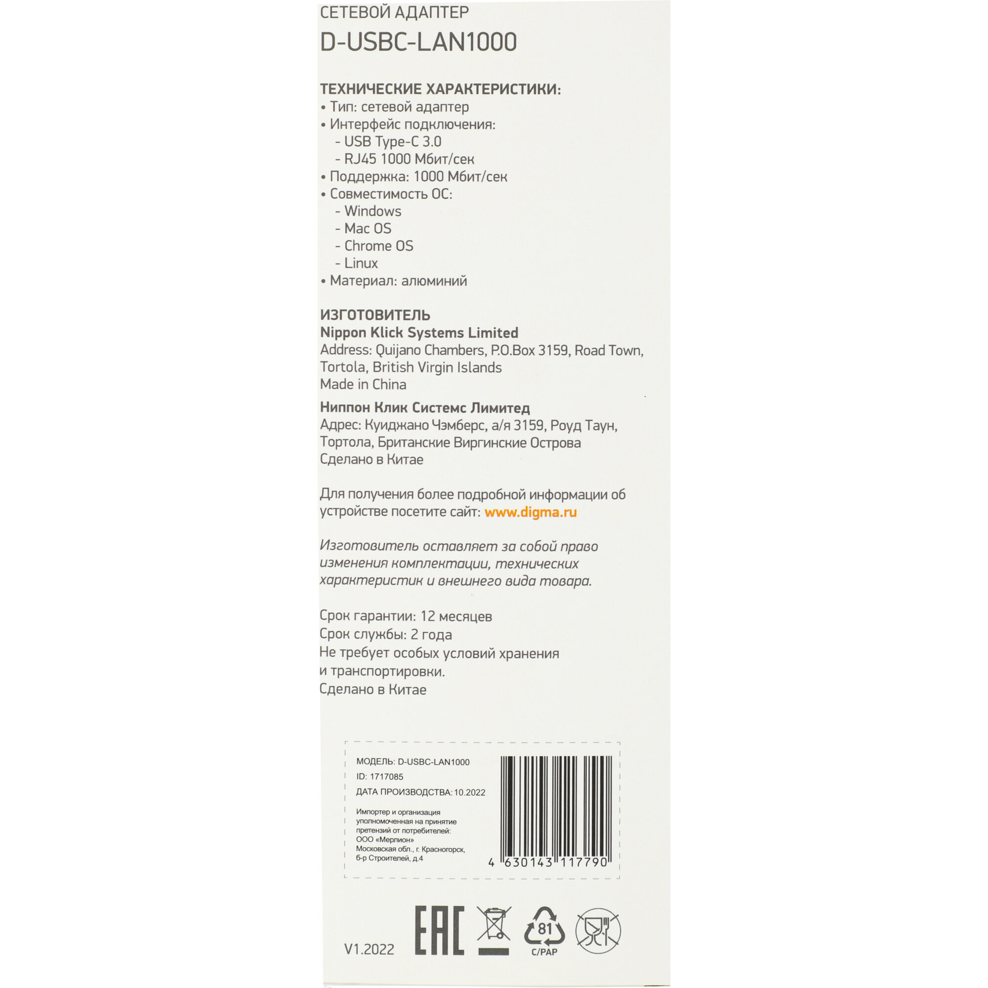 Ниже Вы можете прочитать отзывы на Сетевой адаптер Digma D-USBC-LAN1000, ознакомится с подробными характеристиками, посмотреть интересные обзоры и фотографии на Сетевой адаптер Digma D-USBC-LAN1000.