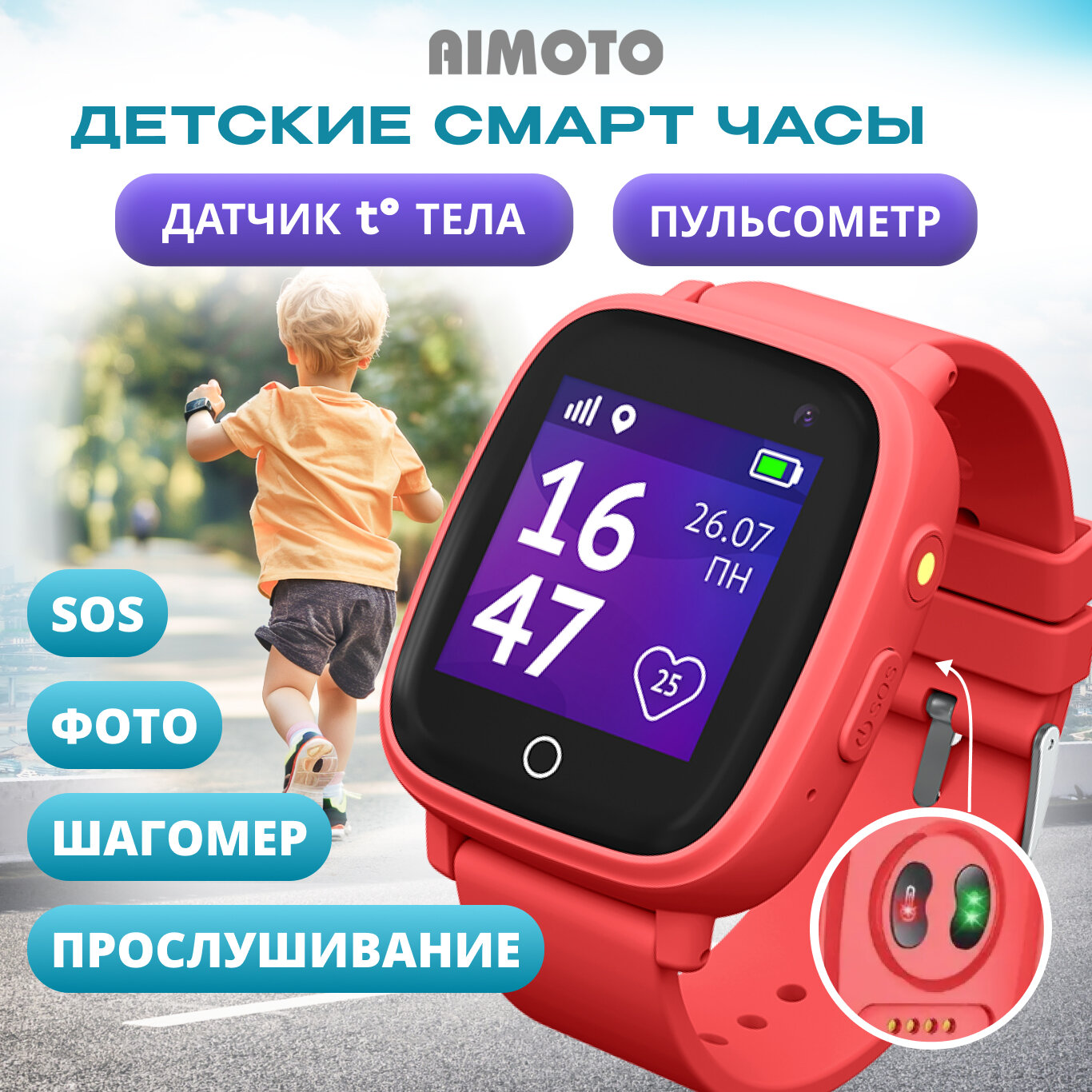 Детские умные часы Aimoto |кнопка жизни Vita Pulse, красные 9709904