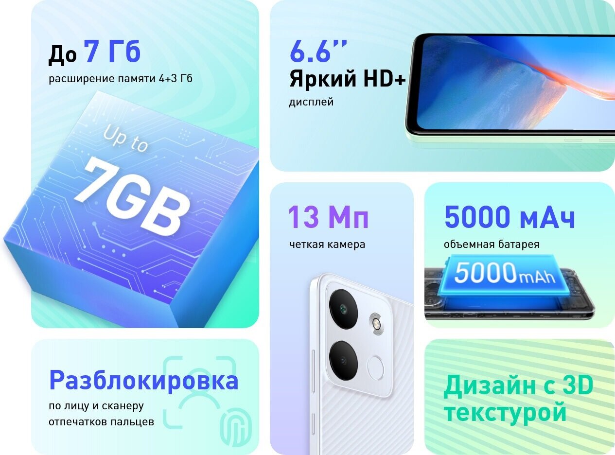 Смартфон Infinix Smart 7 3/64 ГБ, 2 nano SIM, coastal green