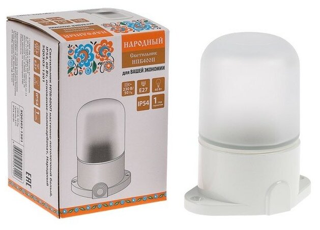 СохранитьСветильник НПБ400П настенно-потолочный белый, IP54, 60 Вт, основание-поликарбонат, Народный Артикул SQ0303-1501 интересное: