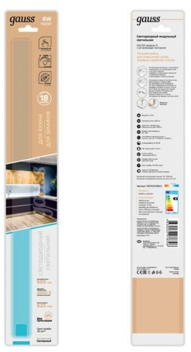Мебельный светильник Gauss модель K 6W 600lm 4000K 170-260V 525mm диммируемый TOUCH 1/10/40