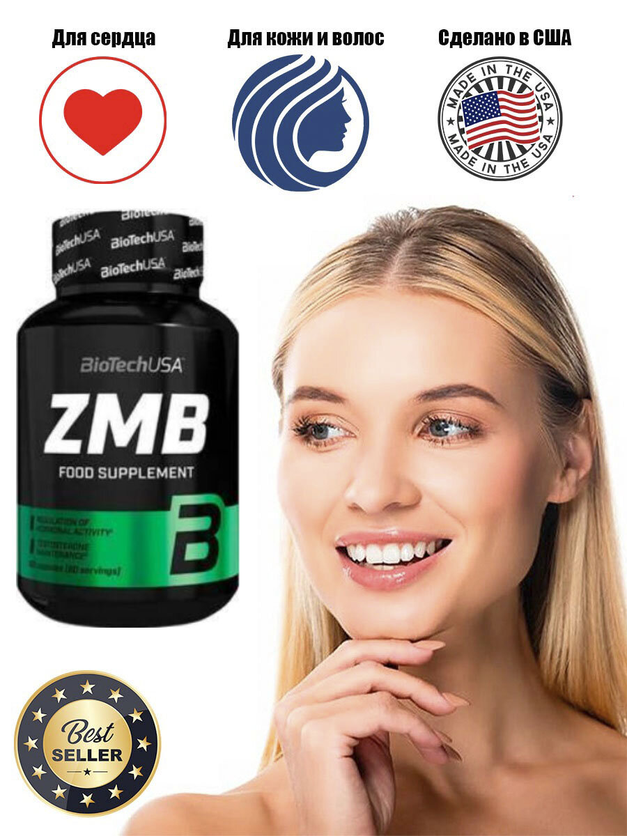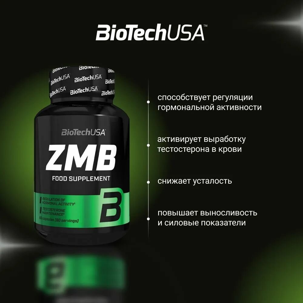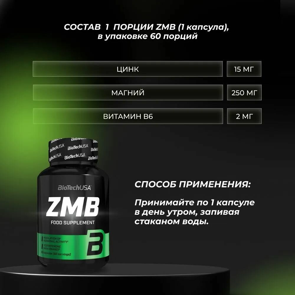 Бустер тестостерона "ZMB", BioTechUSA, цинк 15мг, магний 250мг, B6 2мг, 60 капсул