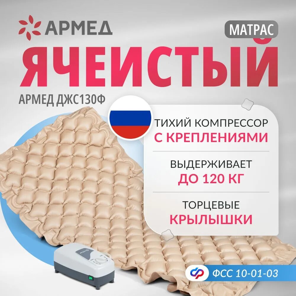 Ниже Вы можете прочитать отзывы на Матрас медицинский противопролежневый ячеистый с компрессором Армед ДЖС130Ф (компрессор с регулировкой давления, фиксирующие крылышки), ознакомится с подробными характеристиками, посмотреть интересные обзоры и фотографии на Матрас медицинский противопролежневый ячеистый с компрессором Армед ДЖС130Ф (компрессор с регулировкой давления, фиксирующие крылышки).