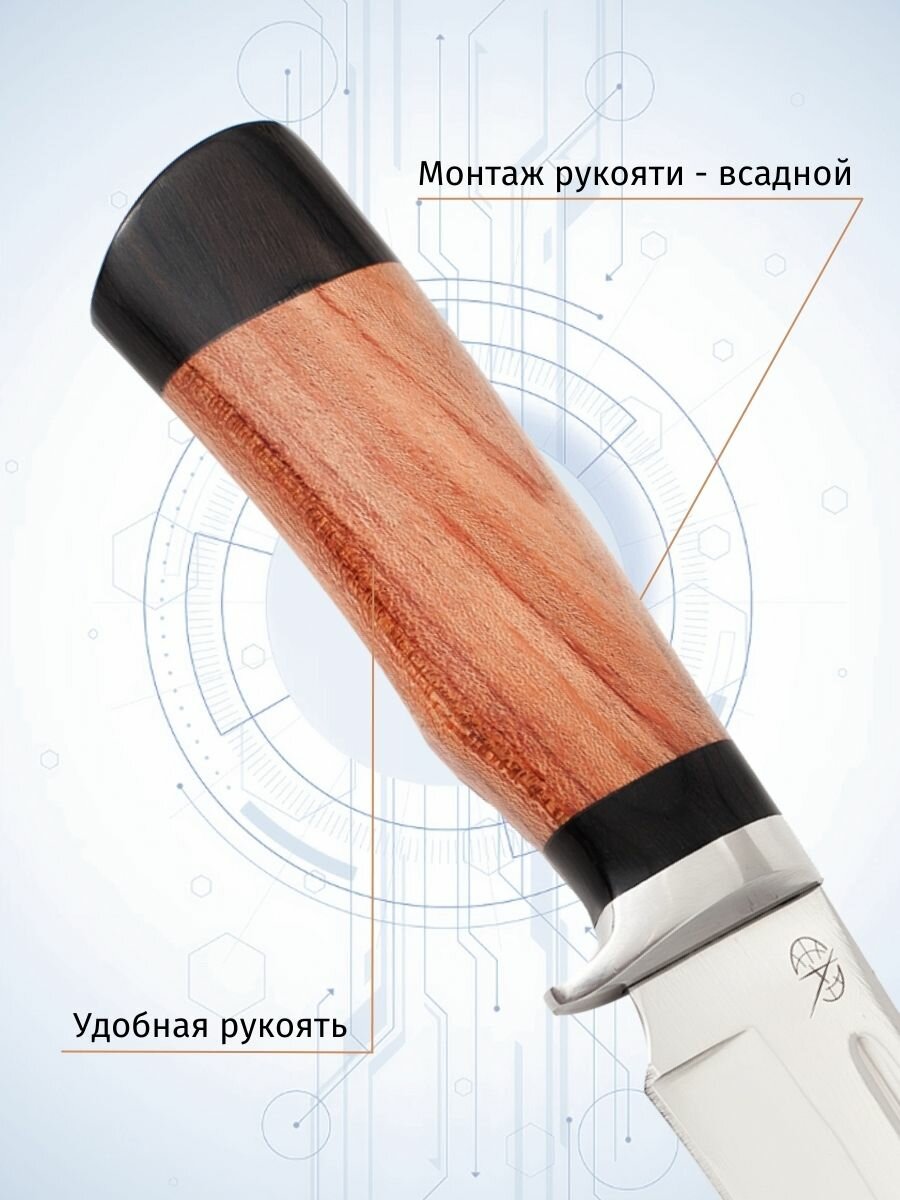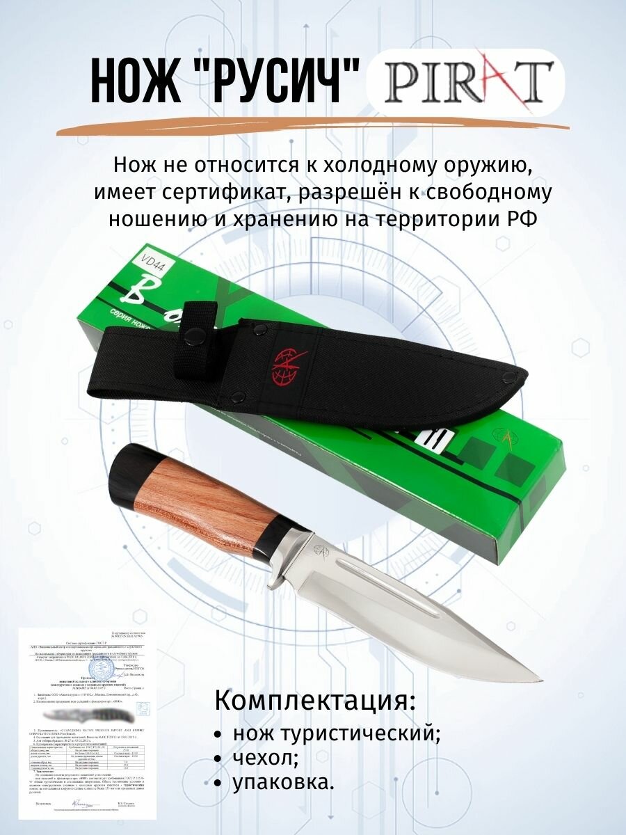 Туристический нож Pirat VD44 "Русич", Длина лезвия 150мм, Чехол, рукоять из ореха из венге интересное:
