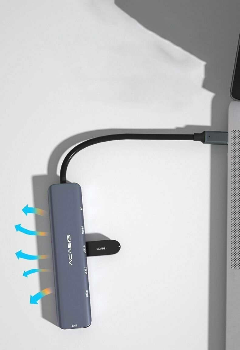 Док-станция Acasis DS-7HN6 6 в 1 с кабелем 1 метр, Type-C to HDMI + USB3.0 x 3 + PD 100 Вт - Темно-серый интересное: