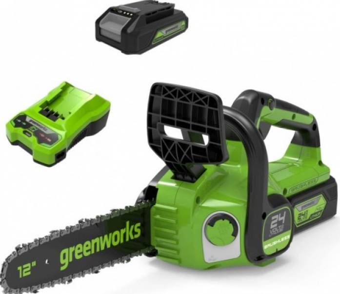 Цепная пила аккумуляторная GreenWorks GD24CS30, 24V, 30см, бесщеточная, c АКБ 2 АЧ и ЗУ