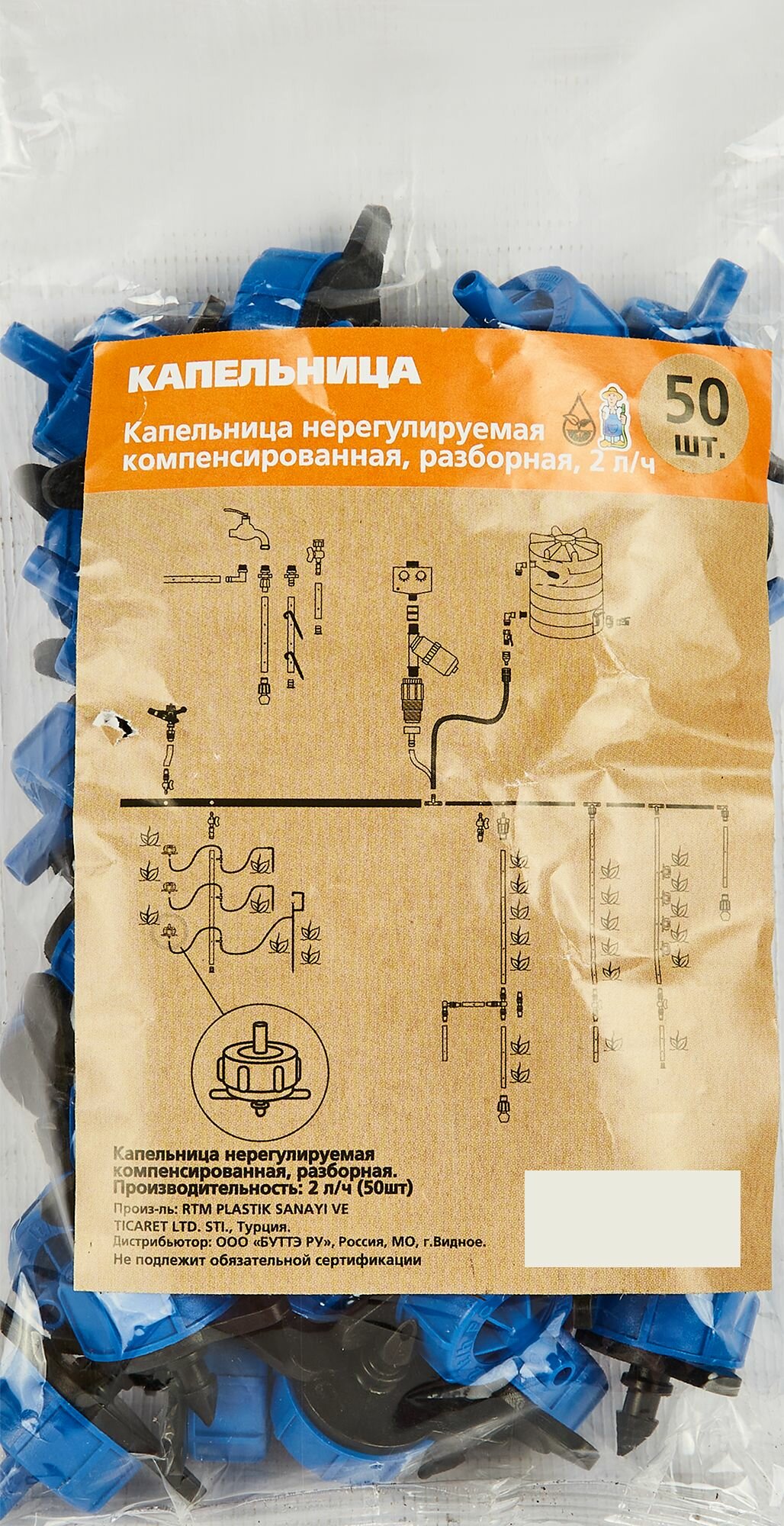 Нерегулируемая компенсированная разборная капельница Профитт 2 л/ч, 50 шт. 1892389