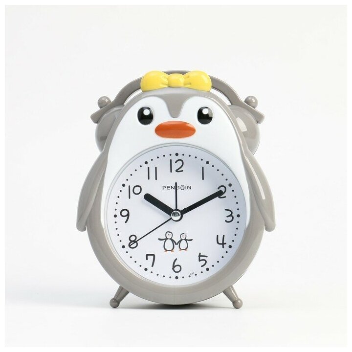 Будильник "Пингвин", дискретный ход, 15.5 x 13 x 5.6 см, АА, серый (1шт.) интересное: