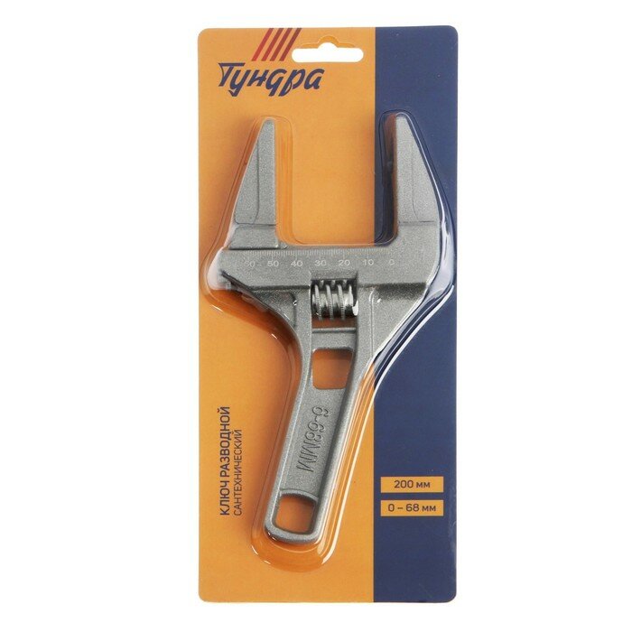 Купить Тундра Ключ разводной сантехнический тундра, укороченная рукоятка, раскрытие губок до 68 мм, 200 мм