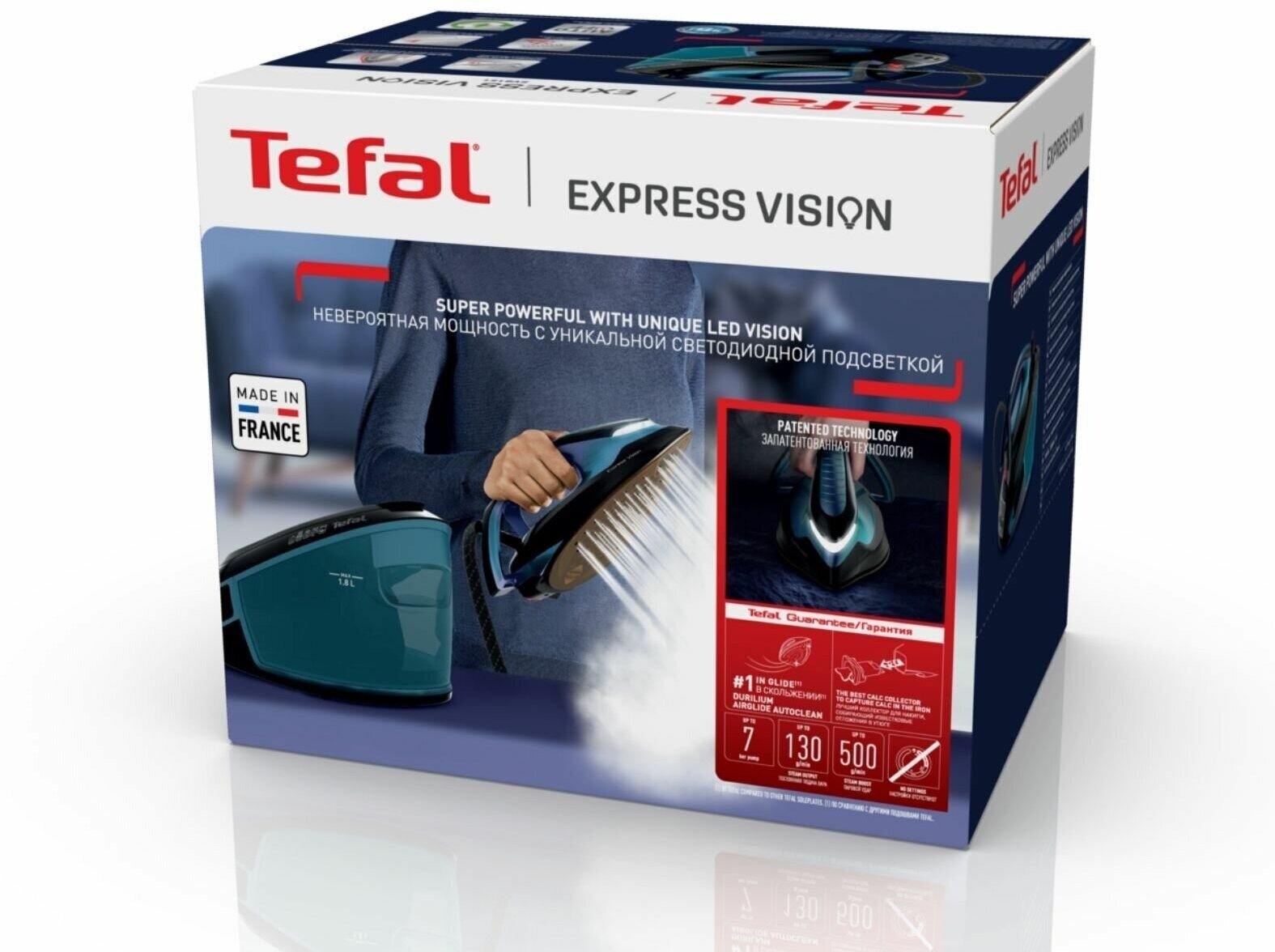 | Дополнительная информация | подошва Durilium Airglide Autoclean, светодиодная подсветка на носике утюга включается автоматически, когда утюг находится в горизонтальном положении |