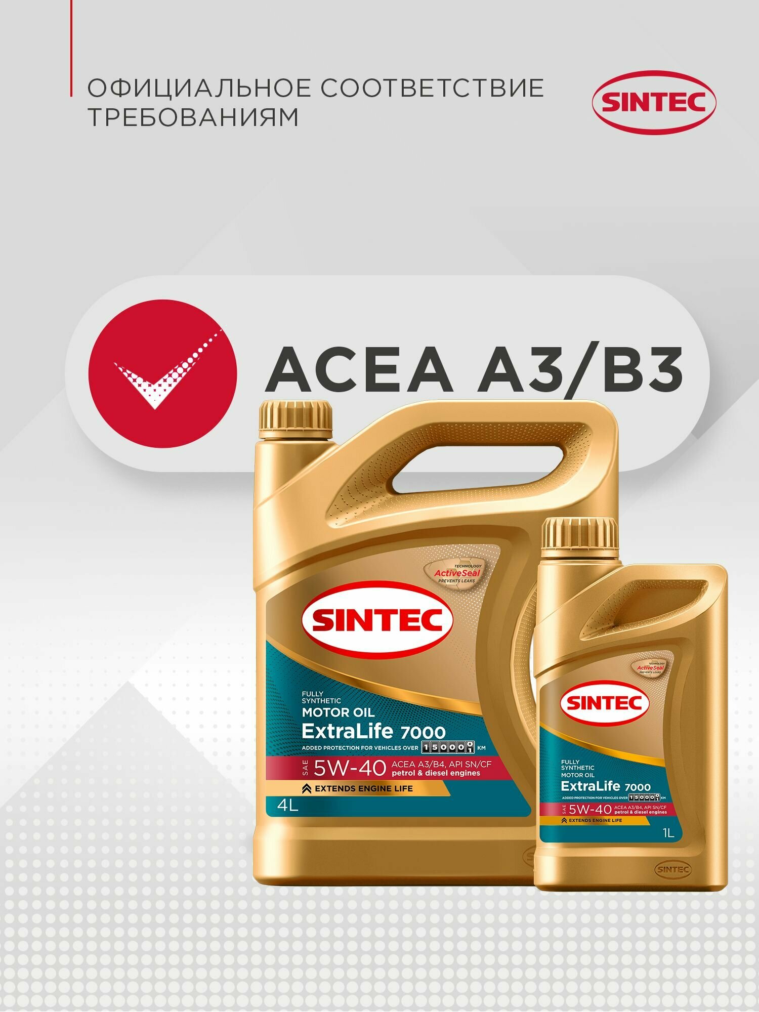 СохранитьМоторное масло SINTEC EXTRALIFE 7000 SAE 5W-40, API SN/CF, ACEA A3/B4 Синтетическое 4 л интересное: